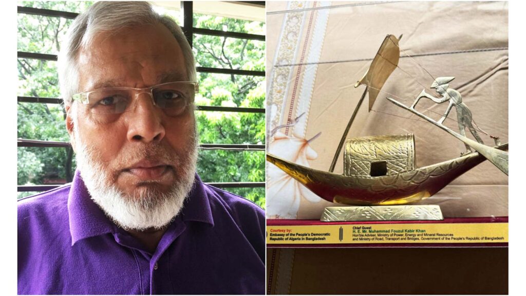 ঢাকায় নিযুক্ত আলজেরিয়ার রাষ্ট্রদূত আবদেল ওহাব সালদানি শনিবার (১ নভেম্বর) বিদ্যুৎ, জ্বালানি ও খনিজ সম্পদ মন্ত্রণালয়ের উপদেষ্টা মুহাম্মদ ফাওজুল কবির খানকে একটি নৌকা উপহার দিয়েছেন।
