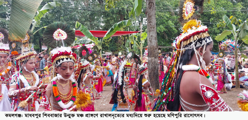 বিপুল উৎসাহ উদ্দিপনা আর নাচ-গানের মধ্যদিয়ে মৌলভীবাজারের কমলগঞ্জে মণিপুরিদের সবচেয়ে বড় ও ঐতিহ্যবাহী ধর্মীয় উৎসব মহারাসলীলা বৃহস্পতিবার ঊষালগ্নে সাঙ্গো হলো। কার্তিক মাসের পূর্ণিমা তিথিতে রাসনৃত্যের বর্ণিল এই উৎসব উপভোগ করেছেন দেশ-বিদেশের নানা শ্রেণি পেশার হাজারো লোকজন। বুধবার দেশের বিভিন্ন স্থান থেকে কমলগঞ্জে হাজির হন নারী-পুরুষ, শিশু-কিশোরসহ নানা শ্রেণি পেশার মানুষ। তাদের পদচারণায় সকাল থেকে মুখর হয়ে ওঠে মণিপুরি পাড়াগুলো। বৃহস্পতিবার সূর্যোদয়ের সঙ্গে সঙ্গে আয়োজনের পরিসমাপ্তি ঘটে। উপজেলার মাধবপুর জোড়া ম-পে বিষ্ণুপ্রিয়া মণিপুরি, আদমপুরের মণিপুরি কালচারাল কমপ্লেক্স মাঠে মণিপুরি মৈ-তৈ সম্প্রদায়ের আয়োজনে হয়েছে মহারাসোৎসব। রাস উৎসব ঘিরে প্রতিবারের মতো এবারও প্রশাসনের পক্ষ থেকে কঠোর নিরাপত্তার ব্যবস্থা নেয়া হয়। বসেছিল রকমারি আয়োজনে বিশাল মেলা। মাধবপুর (শিববাজার) জোড়ামন্ডপে মণিপুরি মহারাসলীলা সেবা সংঘের উদ্যোগে বিষ্ণুপ্রিয়া মণিপুরিদের ১৮৩তম ও আদমপুরে মণিপুরী মৈ-তৈ মণিপুরিদের ৪০তম উৎসব পালিত হয়েছে। মাধবপুর শিববাজার উন্মুক্তি মঞ্চে বুধবার রাতে অনুষ্ঠত আলোচনা সভায় প্রধান অতিথি হিসেবে উপস্থিত ছিলেন মৌলভীবাজারের জেলা প্রশাসক মো: ইসরাইল হোসেন। মণিপুরি মহারাসলীলা সেবা সংঘের সাধারণ সম্পাদক শ্যাম সিংহ বলেন, মাধবপুর জোড়ামন্ডপ রাসোৎসব এ বিভাগের মধ্যে ব্যতিক্রমী আয়োজন। এখানে ধর্ম-বর্ণ নির্বিশেষে হাজার হাজার মানুষের আগমন ঘটে। বর্ণময় শিল্পসমৃদ্ধ বিশ্বনন্দিত মণিপুরি সম্প্রদায়ের ঐতিহ্যবাহী রাস উৎসবে সবার মহামিলনে পরিণত হয়। মণিপুরিদের রাসলীলার অনেক ধরন নিত্যরাস, কুঞ্জরাস, বসন্তরাস, মহারাস, বেনিরাস বা দিবারাস। শারদীয় পূর্ণিমা তিথিতে হয় বলে মহারাসকে মণিপুরিরা পূর্ণিমারাসও বলে থাকে। তিনি আরও বলেন, এই উৎসব উপলক্ষে প্রায় ১৫-২০ দিন ধরে প্রস্তুতি নিয়ে কাজ করেছি আমরা। সেনাবাহিনী, পুলিশ, র্যাব ও বিজিবি মোতায়েন ছিল উৎসবের নিরাপত্তায়।