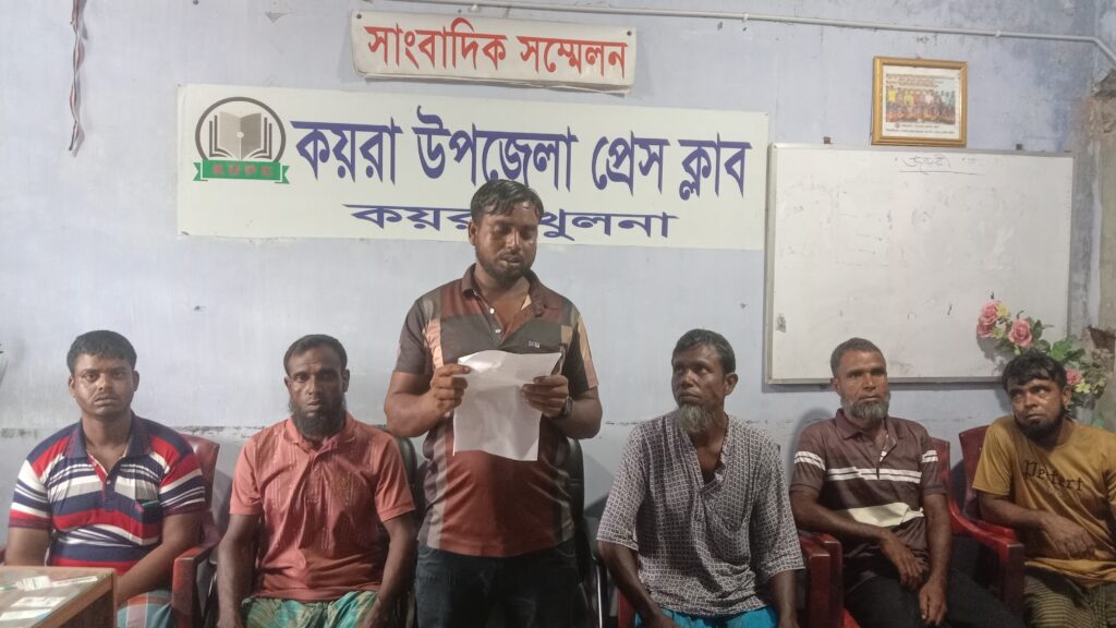 সোমবার (৬ অক্টোবর) দুপুরে কয়রা উপজেলা প্রেসক্লাবে আয়োজিত সংবাদ সম্মেলনে জেলেদের পক্ষে মো: রজব আলী (৩২) এই অভিযোগ করেন।