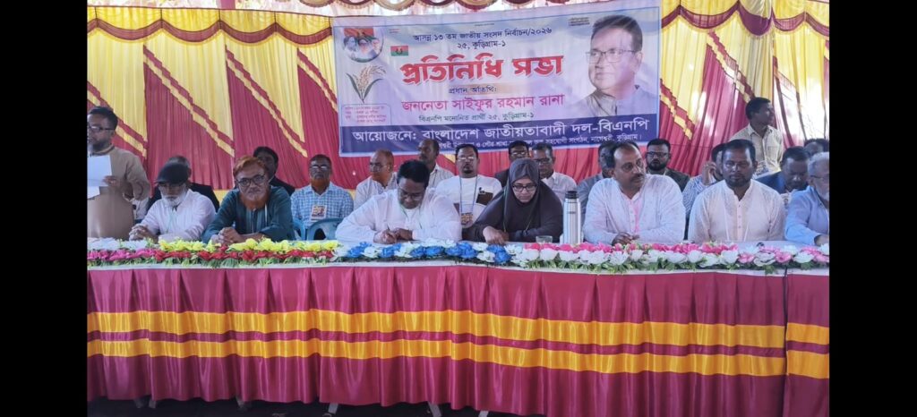 আসন্ন ত্রয়োদশ জাতীয় সংসদ নির্বাচনে কুড়িগ্রাম-১ আসনে বিএনপির মনোনীত প্রাথী সাইফুর রহমান রানার পক্ষে এক প্রতিনিধি সভা অনুষ্ঠিত হয়েছে।