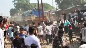 ভৈরবকে জেলা ঘোষণার দাবিতে রেলপথ অবরোধ, যাত্রীবাহী ট্রেনে পাথর নিক্ষেপ