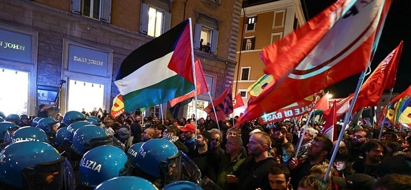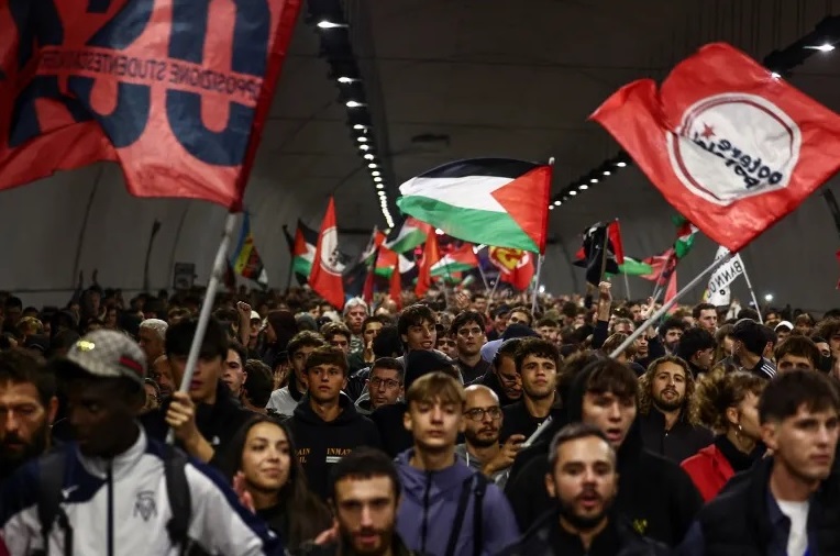 ইতালিতে আন্দোলনের অংশ হিসেবে শিক্ষার্থীরা মিলানের স্টাতালে ও রোমের লা সাপিয়েঞ্জাসহ কয়েকটি বিশ্ববিদ্যালয় দখল করে রাখেন। বলোনিয়ায় গাড়ির টায়ার ফেলে সড়ক অবরোধ করা হয়, আর তুরিনে শত শত মানুষ রাস্তায় নেমে আসে। একইদিনে রোমে চিকিৎসক, নার্স, ফার্মাসিস্টসহ স্বাস্থ্যকর্মীরা একটি ফ্ল্যাশ মব আয়োজন করেন। টর্চলাইট ও মোবাইলের আলো জ্বেলে তারা গাজায় নিহত এক হাজার ৬৭৭ জন স্বাস্থ্যকর্মীর নাম উচ্চারণ করেন। এছাড়া গাজামুখী নৌবহরের সমর্থনে ইতালির ট্রেড ইউনিয়নগুলো দেশজুড়ে সাধারণ ধর্মঘটের ডাক দিয়েছে।