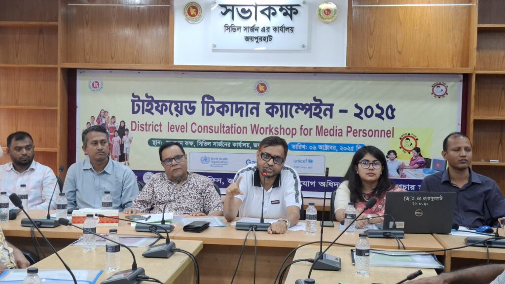 কর্মশালায় জানানো হয়, আগামী ১২ অক্টোবর টাইফয়েড টিকাদান ক্যাম্পইন শুরু হবে। ৯ মাস থেকে ১৫ বছর বয়সী শিশু, কিশোর-কিশোরী অথবা প্রাক-প্রাথমিক থেকে নবম শ্রেণিতে পড়াশোনা করা সকলেই বিনামূল্যে টাইফয়েডের এক ডোজ টিকা দেওয়া হবে। এ জেলায় ২ লাখ ২৬ হাজার শিশু-কিশোরীদের টাইফয়েড টিকাদানের লক্ষ্যমাত্রা ধরা হয়েছে। এখন পর্যন্ত (আজ সোমবার সকাল) এক লাখ ৬ হাজার অনলাইনে রেজিষ্ট্রেশন করেছে। ক্যাম্পেইন শুরুর আগেই লক্ষ্যমাত্রা পূরণ হতে পারে। এই টিকা নিয়ে ফেসবুকে এআই দিয়ে অপপ্রচার চালানো হচ্ছে। এই টিকা দিলে কোন সমস্যা হবে না। এই টিকা গ্রহণে জনগণকে উদ্বুদ্ধ করতে গণমাধ্যম কর্মীদের সক্রিয় ভূমিকা রাখার আহ্বান জানানো হয়।