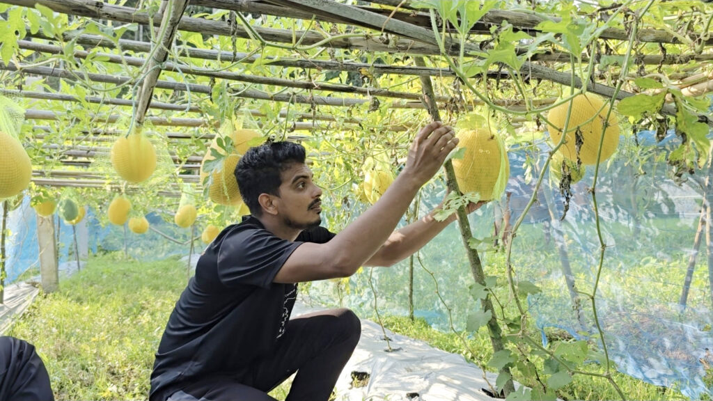 মৌলভীবাজারের জুড়ী উপজেলার গোয়ালবাড়ী ইউনিয়নের লাঠিটিলার ডোমাবাড়ি গ্রামের তরুণ উদ্যোক্তা খোর্শেদ আলম। ব্যতিক্রমী সব ফসল চাষ করায় অতি আগ্রহী এক কৃষক। এবার পরীক্ষামূলকভাবে প্রথমবারের মতো চাষ করলেন সানগোল্ড নামের আকর্ষণীয় হলুদ তরমুজ। বীজপাতা কোম্পানির আবিষ্কৃত নতুন এই প্রজাতির তরমুজ দেখতে যেমন সুন্দর স্বাদ ও তেমন সুমিষ্ট। এলাকায় সাধারণ ক্রেতাদের কাছে সুস্বাদু এই ফলের চাহিদাও অনেক বেশি। সোশ্যাল মিডিয়ায় দেখে এই তরমুজ সরাসরি দেখতে এবং স্বাদ নিতে বিভিন্ন এলাকা থেকে মানুষ ছুটে গেছেন। অনেকেই প্রথম দেখেছেন এই ফল এবং খেয়েছেনও। তরমুজ চাষ দেখতে আসা জিল্লু আহমেদ বলেন, আমাদের উপজেলার সীমান্তবর্তী এলাকায় এমন ব্যতিক্রমী ফসলের চাষ আসলেই সুন্দর। আমি এই তরমুজ খেয়েছি, এটি দেখতে যেমন ভিন্ন তেমনি স্বাদও মিষ্টি, আমি বাড়িতেও নিয়ে যাব এই তরমুজ। তরমুজ নিতে আসা আমিরাত প্রবাসী সাইফুল্লাহ হাসান বলেন, আমি একজন প্রবাসী। আমরা তরুণরা সবসময় চিন্তা করি কীভাবে দেশত্যাগ করা যায়, দেশে থেকে কি করব। আমি মনে করি এই মনোভাব বদলে যেকোনো তরুণ পতিত জমিতে কৃষিময় এমন নতুন নতুন উদ্যোগ নিলে আর নিজের শ্রম টুকু দিলে খোর্শেদ আলম ভাইয়ের মতো সফল হতে পারবে। তরুণ উদ্যোক্তা ও কৃষক খোর্শেদ আলম বলেন, আমি পরীক্ষামূলকভাবে চাষ করি এই প্রজাতির তরমুজ। অনেক ভালো ফলনও পেয়েছি, আগামীতে বাণিজ্যিকভাবে করার প্ল্যান আছে। আমাদের এই এলাকার জমিগুলো তরমুজ চাষের জন্য উপযুক্ত। আমি চাই আমার মতো তরুণরা কৃষিতে ঝুঁকুক, কৃষিখাতে পরিশ্রম করলে দেশেই অনেক কিছু করা সম্ভব। এছাড়াও এখন কৃষি অফিসও কৃষকদের সর্বদা সহযোগিতা করে, সেক্ষেত্রে নতুনরাও শিখবে এবং কৃষিখাত থেকে লাভবান হবে।