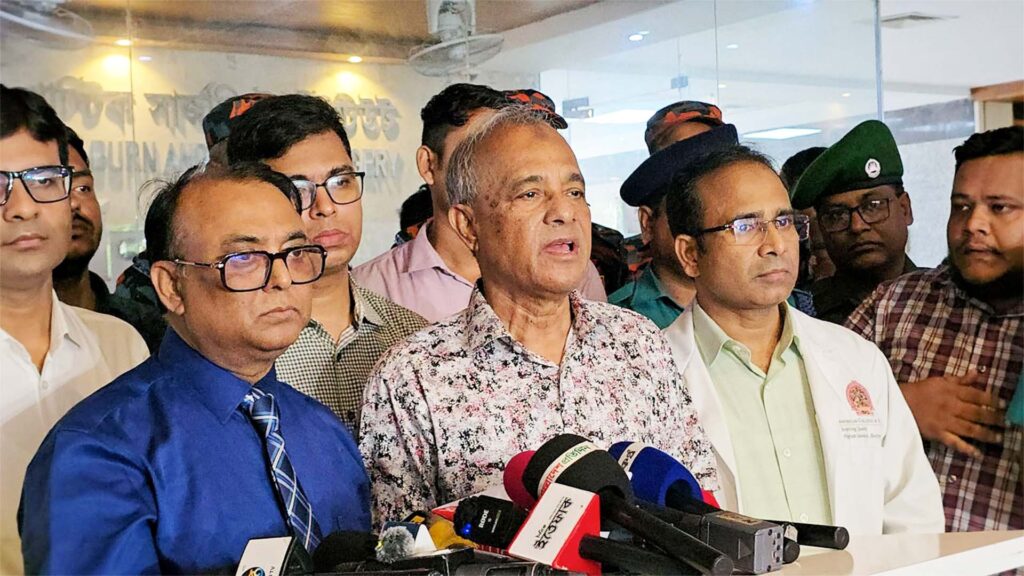 তিনি বলেন, “চারজনের মধ্যে দুজনের শরীরের ১০০ শতাংশ, একজনের ৪২ শতাংশ এবং আরেকজনের ৫ শতাংশ দগ্ধ হয়েছে। তিনজনের অবস্থা গুরুতর হওয়ায় তাদের এইচডিইউতে (হাই ডিপেন্ডেন্সি ইউনিট) রাখা হয়েছে। অন্যজন ইন্টারমিডিয়েট ক্যাটাগরিতে রয়েছেন। আমরা আন্তর্জাতিক প্রটোকল মেনে চিকিৎসা চালিয়ে যাচ্ছি। প্রয়োজনে ধাপে ধাপে অপারেশনের ব্যবস্থা করা হবে।”