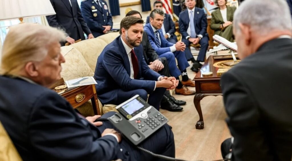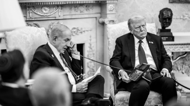 হোয়াইট হাউস থেকে প্রকাশিত সাদাকালো একটি ছবিতে দেখা যায়, ট্রাম্প ফোন ধরে আছেন এবং নেতানিয়াহু স্ক্রিপ্ট থেকে কিছু পড়ছেন।
