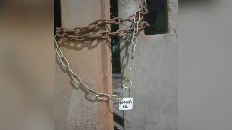 তালা দেওয়ার সময় সাদা কাগজে ‘লকডাউন বিএসএল’ লিখে ঝুলিয়ে দেওয়া হয়।