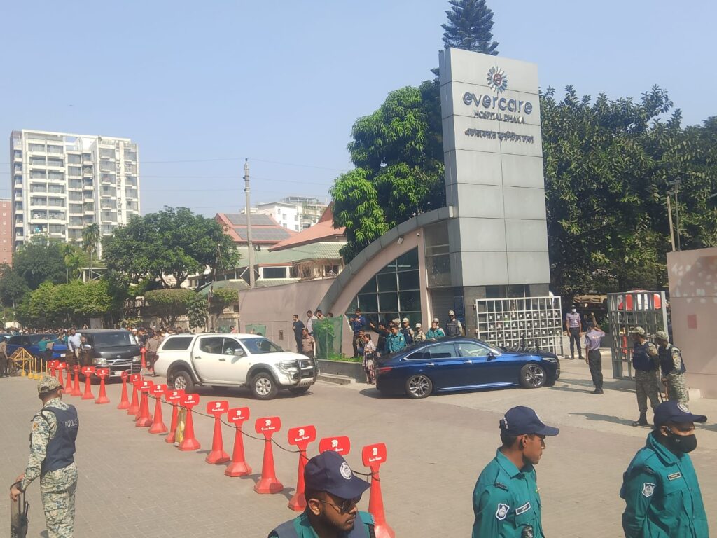 বেলা ১১টা ২৪ মিনিটে ভিআইপি গেট দিয়ে বের হয়ে তিনি এভারকেয়ার হাসপাতালের উদ্দেশে রওনা হন।