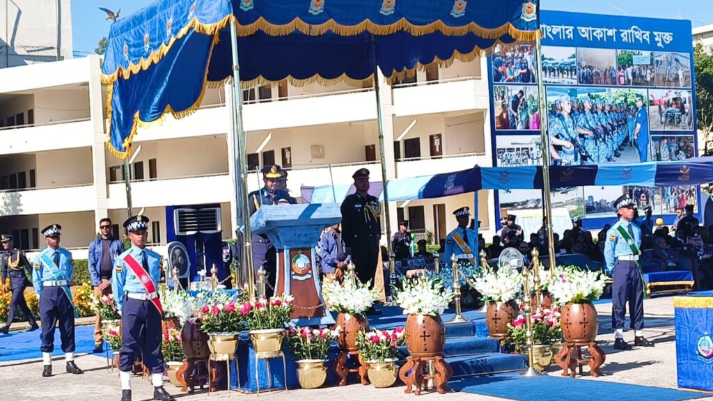 এর আগে বিমান বাহিনী প্রধান প্যারেড গ্রাউন্ডে এসে পৌঁছলে বিমান বাহিনী ঘাঁটি বীর উত্তম এ কে খন্দকার-এর এয়ার অধিনায়ক এয়ার ভাইস মার্শাল মোহাম্মদ খায়ের উল আফসার, জিইউপি, এনডিসি, পিএসসি এবং রিক্রুটস্ ট্রেনিং স্কুলের অধিনায়ক গ্রুপ ক্যাপ্টেন মো. খায়রুল বাসার, পিএসসি তাঁকে স্বাগত জানান।