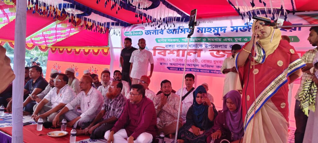 গতকাল বুধবার (২২ অক্টোবর) বিকেলে মজিদ কলেজের পাশে বালুর আয়োজিত সমাবেশে মুক্তি যুদ্ধা হারুনুর রশিদ সভাপতিত্বে জনসভায় প্রধান অতিথি হিসেবে বক্তব্য রাখেন শিক্ষানুরাগী ও সমাজসেবক আলহাজ্ব গোলাম কিবরিয়া সরকার। সমাবেশে অন্যান্যদের মধ্যে বক্তব্য মুরাদনগর উপজেলা জাতীয় নাগরিক পার্টির সভাপতি মিনহাজুল হক, বাজার থানা এনসিপি সভাপতি কামরুল হাসান কেনাল, সাধারণ সম্পাদক মোঃ শফিকুল ইসলাম ভূঁইয়া, মুরাদনগর উপজেলা এনসিপির সার্চ কমিটির সদস্য মোঃ এনামুল আলম, শেখ আলমগীর, কুমিল্লা উঃ জেলা জাতীয়তাবাদী মহিলা দলের সহ-সভাপতি তাহমিনা আক্তার, রামচন্দ্রপুর উত্তর ইউনিয়ন জামায়াতে ইসলামী সেক্রেটারি রকিবুদ্দিন শিরাজী, চাপিতলা গ্রামের আবু বক্কর ভূইয়া,