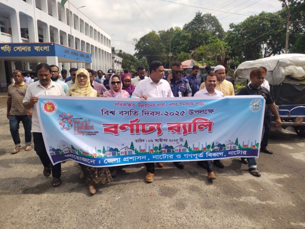 ‘পরিকল্পিত উন্নয়নের ধারা, নগর সমস্যায় সাড়া’ এই প্রতিপাদ্য  বিষয়টিকে সামনে রেখে নাটোরে বিশ্ব বসতি দিবস পালন করা হয়েছে। দিবসটি উপলক্ষে নাটোর জেলা প্রশাসকের  আয়োজনে এবং নাটোর গণপূর্ত বিভাগের  সহযোগীতায় সোমবার (৬ অক্টোবর) সকাল ১০টায় জেলা প্রশাসকের কার্যলয়ের সামনে থেকে একটি র‌্যালী শুরু হয়ে গুরুত্বপূর্ণ সড়ক  প্রদক্ষিণ করা হয়। পরে জেলা প্রশাসক  সম্মেলন কক্ষে আয়োজিত এক আলোচনা সভায় সভাপতিত্ব করেন জেলা প্রশাসক  মিস আসমা শাহীন।