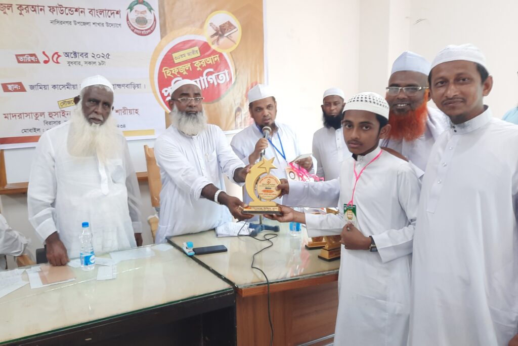 পরে চার গ্রুপে প্রতিযোগিতায় বিজয়ীদের মধ্যে পুরস্কার বিতরণ ও দোয়ার মাধ্যমে হিফজুল কোরআন প্রতিযোগিতা সমাপ্তি হয়।