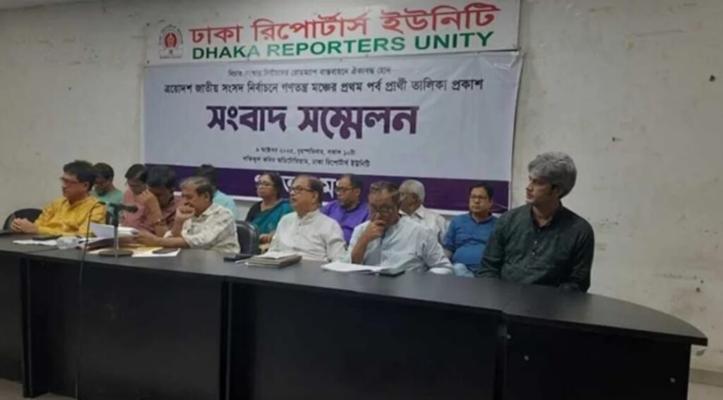 ত্রয়োদশ জাতীয় সংসদ নির্বাচনে তিনশ আসনেই প্রার্থী দেওয়ার ঘোষণা দিয়ে প্রথম দফায় ১৩৮ আসনে প্রার্থী তালিকা প্রকাশ করেছে বাম ও প্রগতিশীল ঘরানার ছয় দলীয় জোট ‘গণতন্ত্র মঞ্চ’।