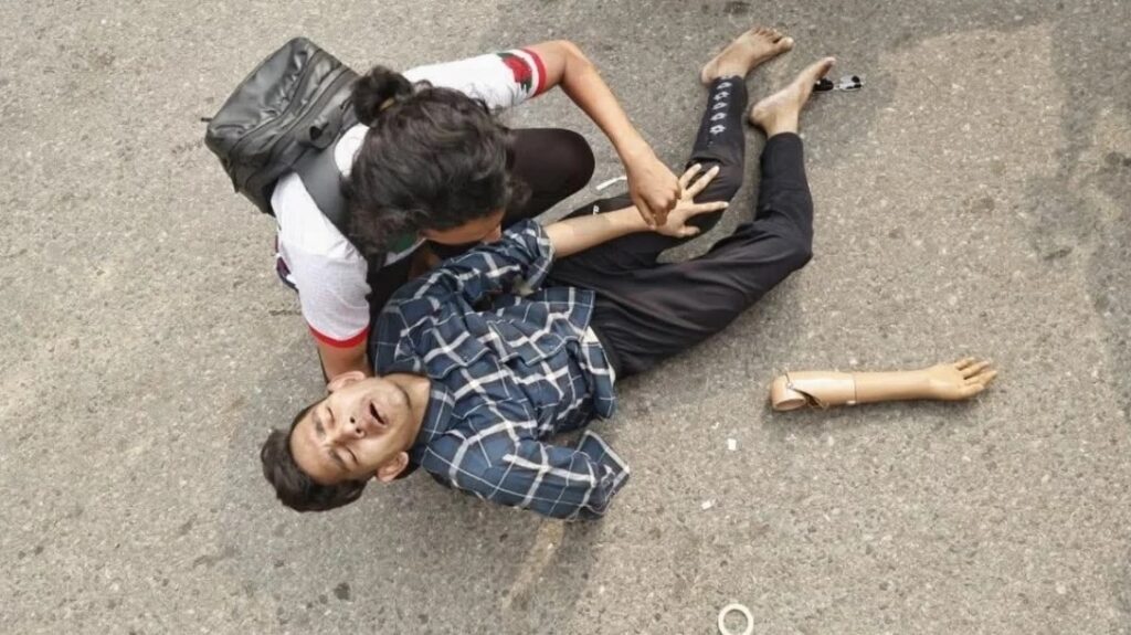 ঘটনাস্থলে উপস্থিত প্রত্যক্ষদর্শীরা জানান, আন্দোলনকারীদের ওপর পুলিশের লাঠিচার্জের সময় এক জুলাই যোদ্ধার শরীরে লাগানো কৃত্রিম হাত খুলে রাস্তায় পড়ে থাকে। লাঠিচার্জে আহত সেই যোদ্ধা হাতটি ফেলে রেখে ঘটনাস্থল ত্যাগ করেন। মূলত, লাঠিচার্জ সহ্য করতে না পেরেই সে কৃত্রিম হাত রেখে পালিয়ে যান। সংঘর্ষের পর সড়কের উপর পড়ে থাকা সেই কৃত্রিম হাত সামাজিক যোগাযোগমাধ্যমে ছড়িয়ে পড়ে, যা তীব্র আলোচনার জন্ম দিয়েছে।