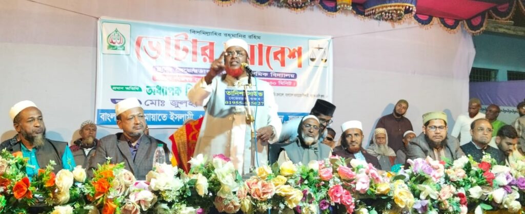 এদিকে সন্ধ্যায় ফুলতলা সদর ইউনিয়নের ঢাকুরিয়া সরকারি স্কুল মাঠে অনুষ্ঠিত ভোটার সমাবেশে প্রধান অতিথির বক্তৃতায় মিয়া গোলাম পরওয়ার বলেন, তরুণরাই আগামী নির্বাচনে সরকার গঠনে মূখ্য ভূমিকা পালন করবে। প্রায় ১৩ কোটি ভোটারের সাড়ে ৪ কোটি তরুণ ভোটার। তাদের ভোটে নির্বাচিত হবে আগামীর সরকার। সুতরাং তরুণদের পালস্ বুঝে সবাইকে রাজনীতি করতে হবে। এই তরুণরাই ফ্যাসিবাদি সরকারকে হটিয়ে আমাদের নতুন করে মুক্তি এনে দিয়েছে। তাই যারা তরুণদের চাওয়া বুঝতে ব্যর্থ হবে তারাই আঁস্তাকুড়ে নিক্ষিপ্ত হবে। জামায়াত এই জেনজি’র আকাঙ্ক্ষাকে সামনে রেখে রাজনীতি করতে চায়। আমরা ন্যায় ও ইনসাফের একটা কল্যাণকর রাষ্ট্র গড়তে চাই যেখানে শিশু, কিশোর থেকে শুরু করে তরুণ, বৃদ্ধ, নারী-পুরুষসহ সকল শ্রেণী পেশার মানুষের চাহিদা পূরণ হবে যেখানে চাঁদার জন্য আর কাউকে জীবন দিতে হবে না, বেকারত্বের অভিশাপ নিয়ে আর কাউকে আত্মহত্যা করতে হবেনা। তাই আগামী নির্বাচনে আপনারা দল, মত, ধর্ম, বর্ণ, গোত্র নির্বিশেষে ন্যায় ও ইনসাফের প্রতীক দাঁড়িপাল্লা মার্কায় ভোট দিয়ে কাঙ্ক্ষিত রাষ্ট্র গড়তে সাহায্য করুন।