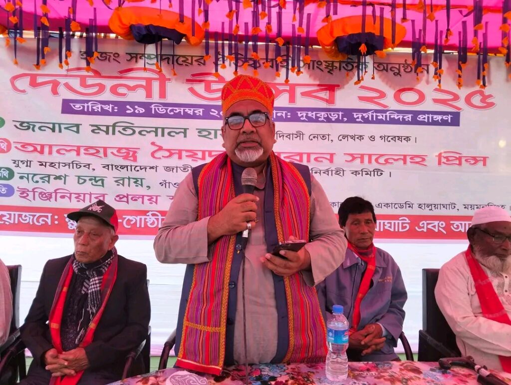 তিনি আজ দুপুরে ময়মনসিংহের ধোবাউড়া উপজেলার দক্ষিণ মাইজপাড়া ইউনিয়নের দুধকুড়া গ্রামে হাজং সম্প্রদায়ের নবান্ন উৎসব “দেউলী উৎসব” উদ্বোধনকালে এসব কথা বলেন।