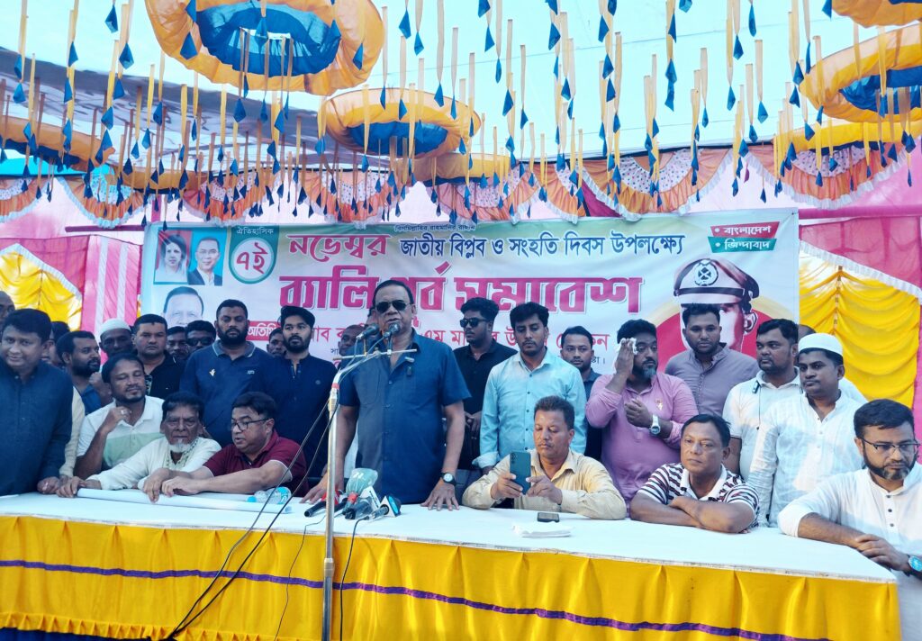 শুক্রবার (৭ নভেম্বর) বিকেল ৫ টায় সোনাইমুড়ী রেলওয়ে চত্বরে জাতীয় বিপ্লব ও সংহতি দিবস উপলক্ষে বাংলাদেশ জাতীয়তাবাদীদল বিএনপির উদ্যোগে র্যালী ও আলোচনা সভায় প্রধান অতিথির বক্তব্যে এসব কথা বলেন বিএনপি চেয়ারপারসনের উপদেষ্টা, সুপ্রিম কোর্ট বার এসোসিয়েশনের সভাপতি ও নোয়াখালী-১ আসনের সাবেক সংসদ সদস্য ব্যারিস্টার এ এম মাহবুব উদ্দিন খোকন।