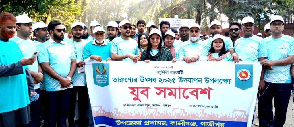 গাজীপুরের কালীগঞ্জে ‘এসো দেশ বদলাই, পৃথিবী বদলাই’ প্রতিপাদ্যে নতুন বাংলাদেশ গড়ার লক্ষ্যে চুকবল, সকল শ্রেনী পেশার জনসাধারনদের নিয়ে উপজেলা প্রশাসনের আয়োজনে র্যালি, ম্যারাথন দৌড়, যুব সমাবেশ, বর্জ্য ব্যবস্থাপনা অলিম্পিয়াড, ক্রিকেট খেলা, সাইক্লিং ও ব্যাডমিন্টনসহ বিভিন্ন ইভেন্ট নিয়ে এবারের ‘তারুণ্যের উৎসব ২০২৫’ উদযাপিত হয়েছে।