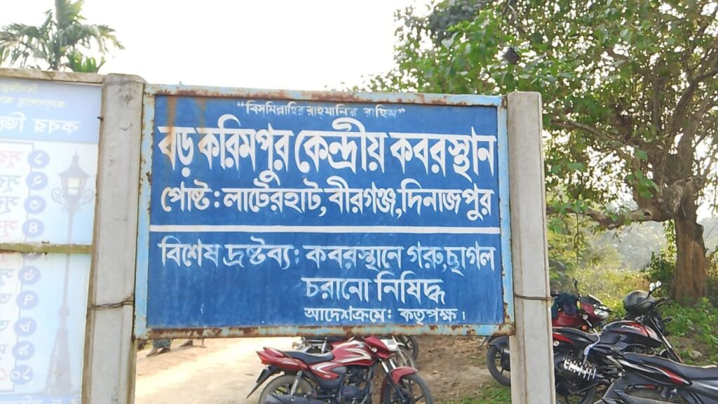 দিনাজপুরের বীরগঞ্জ উপজেলার বড় করিমপুর দর্গাডাঙ্গা কবরস্থান রক্ষায় বড় করিমপুর ও জোতরঘু এলাকাবাসী মানববন্ধন করে দখলচেষ্টার প্রতিবাদ জানিয়েছে। বুধবার (৩ ডিসেম্বর) বড় করিমপুর এলাকায় এ মানববন্ধন অনুষ্ঠিত হয়। এতে নারী-পুরুষসহ বিভিন্ন বয়সের বিপুলসংখ্যক গ্রামবাসী অংশ নেন।