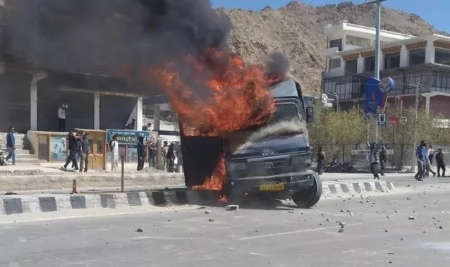 এনডিটিভির প্রতিবেদন থেকে জানা যায়, বুধবার (২৪ সেপ্টেম্বর) সকালে লেহ শহরে শুরু হওয়া বিক্ষোভ দ্রুতই সহিংস হয়ে ওঠে। জনতা কর্মকর্তাদের ওপর পাথর ছুঁড়ে মারে এবং লাদাখ বিজেপির সদর দপ্তরে আগুন ধরিয়ে দেয়। সেই সঙ্গে পুড়িয়ে দেওয়া হয়েছে একটি পুলিশের গাড়ি। জবাবে পুলিশও কাঁদানে গ্যাসের শেল এবং লাঠিচার্জ করে।