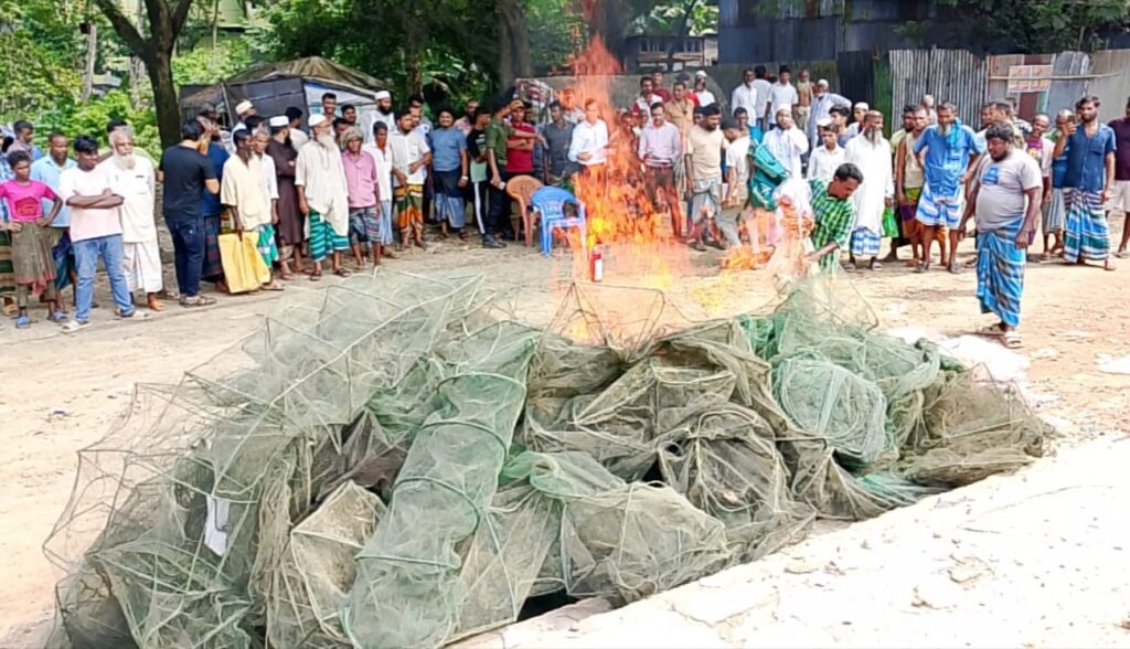 জনস্বাস্থ্য সুরক্ষা ও মৎস্যসম্পদ রক্ষায় কুমিল্লার মুরাদনগর উপজেলায় এক কঠোর অভিযান পরিচালনা করেছে মোবাইল কোর্ট। এক্সিকিউটিভ ম্যাজিস্ট্রেট ও নির্বাহী কর্মকর্তা মোঃ আব্দুর রহমান-এর নেতৃত্বে পরিচালিত এই অভিযানে লাইসেন্সবিহীন বোতলজাত পানি বিক্রির অপরাধে ১৫ হাজার টাকা জরিমানা করা হয় এবং প্রায় দেড় লাখ টাকা মূল্যের বিপুল পরিমাণ নিষিদ্ধ কারেন্ট ও চায়না জাল জব্দ করে জনসমক্ষে পুড়িয়ে ধ্বংস করা হয়।