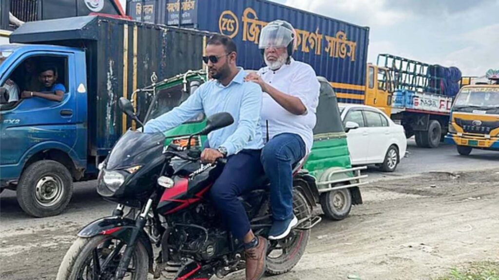 বুধবার (৮ অক্টোবর) বেলা পৌনে ১১টার দিকে তিনি আশুগঞ্জ থেকে যাত্রা শুরু করেন। প্রায় দুই ঘণ্টা পর, দুপুর ১টার দিকে তিনি বিশ্বরোড মোড়ে পৌঁছান। আট থেকে দশটি মোটরসাইকেলের বহর নিয়ে তিনি বিশ্বরোড নামেন, যদিও তার গাড়িবহর তখনও আশুগঞ্জ এলাকায় আটকা পড়ে ছিল। তিনি বাহাদুরপুর এলাকা থেকেই মোটরসাইকেলে উঠেন বলে জানা গেছে।