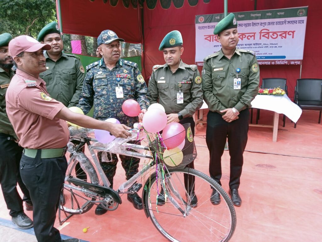 রংপুরে আনসার ও ভিডিপি সদস্যদের মাঝে ৭৩টি বাইসাইকেল বিতরণ