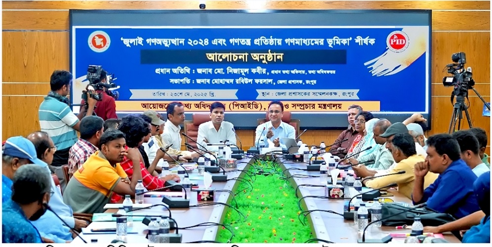 রংপুর ব্যুরো: রংপুরে তথ্য অধিদফতরের উদ্যোগে ‘জুলাই গণঅভ্যুত্থান ২০২৪ এবং গণতন্ত্র প্রতিষ্ঠায় গণমাধ্যমের ভূমিকা’ শীর্ষক আলোচনাসভা অনুষ্ঠিত হয়েছে।গতকাল শুক্রবার (২৩শে মে) সকালে রংপুর জেলাপ্রশাসকের সম্মেলনকক্ষে অনুষ্ঠিত আলোচনাসভায় প্রধান অতিথি হিসাবে উপস্থিত ছিলেন তথ্য অধিদফতরের সিনিয়র উপপ্রধান তথ্য অফিসার ম. জাভেদ ইকবাল। অনুষ্ঠানে সভাপতিত্ব করেন রংপুরের অতিরিক্ত জেলাপ্রশাসক (সার্বিক) মো. রমিজ আলম।