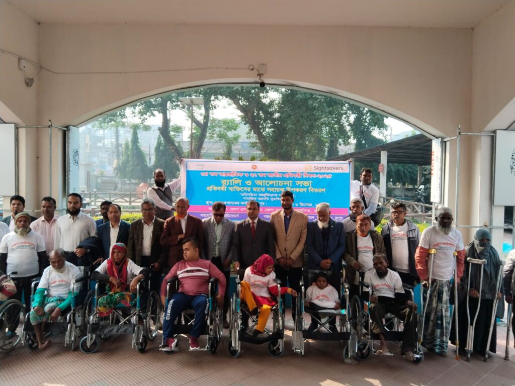 ৩৪ তম আন্তর্জাতিক প্রতিবন্ধী দিবস ও ২৭ তম জাতীয় প্রতিবন্ধী দিবস উপলক্ষ্যে কমিউনিটি চক্ষু হাসপাতাল, মডার্ণ মোড় এর উদ্দ্যোগে গতকাল বুধবাব দুপুরে সাইটসেভার্স এর অর্থায়ন এবং সহায়তায় ডিসট্রিক্ট ইনকু¬িসভ আই কেয়ার প্রোগ্রাম প্রকল্পের অধীনে রংপুরে প্রতিবন্ধী ব্যক্তিদের মাঝে সহায়ক উপকরণ হুইল চেয়ার ও ত্রুাচ বিতরণ করা হয়। আন্তর্জাতিক প্রতিবন্ধী দিবসের বণার্ঢ্য র্যালি শেষে প্রতিবন্ধী ব্যক্তিদের মাঝে সহায়ক উপকরণ হুইল চেয়ার ও ত্রুাচ বিতরণ করেন রংপুরের অতিরিক্ত জেলা প্রশাসক (রাজস্ব) জআবু সাইদ। জেলা সমাজসেবা কার্যালয়ের উপ-পরিচালক অনীল চন্দ্র বম্মর্ণ। আরও উপস্থিত ছিলেন জেলা সিভিল সার্জন ডা:শাহীন সুলতানা, অতিরিক্ত জেলা পুলিশ সুপার জনাব সুশান্ত চন্দ্র রায়। উপস্থিত ছিলেন সাইটসেভার্স এর জেলা সমন্বয়কারী মাসুদ রানা, কমিউনিটি চক্ষু হাসপাতালের সহকারী নির্বাহী পরিচালক তুষার কান্তি দাস, সিনিয়র ম্যানেজার জাফর আহমেদ, ইনক্লুশন অফিসার শেখ আব্দুল করিম। রংপুরের ৮টি উপজেলার ১৪ টি প্রতিবন্ধী ব্যক্তিদের সংগঠনের ১৪ জন প্রতিবন্ধী ব্যক্তিদের মাঝে সহায়ক উপকরণ হুইল চেয়ার ও ত্রুাচ বিতরণ করা হয়।