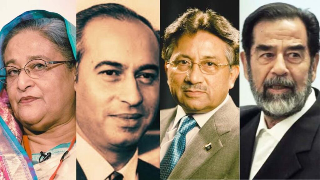 দক্ষিণ এশিয়ায় শেখ হাসিনার আগেও দুই জন সাবেক রাষ্ট্রপ্রধান মৃত্যুদণ্ডের রায়ের মুখোমুখি হয়েছেন। দু’জনই পাকিস্তানের—জুলফিকার আলী ভুট্টো ও পারভেজ মোশাররফ। তাঁদের বিরুদ্ধে যথাক্রমে রাজনৈতিক প্রতিদ্বন্দ্বী হত্যা ও রাষ্ট্রদ্রোহের অভিযোগে এসব রায় ঘোষণা করা হয়েছিল। অন্যদিকে মধ্যপ্রাচ্যে বিচারিক প্রক্রিয়ার মধ্য দিয়ে মৃত্যুদণ্ড কার্যকরের সবচেয়ে আলোচিত উদাহরণগুলোর একটি হলো ইরাকের সাবেক প্রেসিডেন্ট সাদ্দাম হোসেনের ফাঁসি।