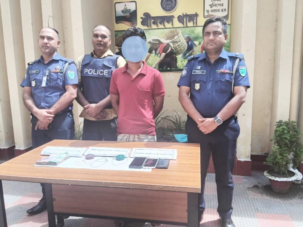 পরে অভিযোগের ভিত্তিতে শ্রীমঙ্গল থানা পুলিশের এসআই(নিরস্ত্র) মোঃ মহিবুর রহমান নেতৃত্বে একটি টিম অভিযান চালিয়ে রুপসপুর খালেক হাজারির ভাড়াটিয়াবাসা থেকে আসামীকে আটক করে।