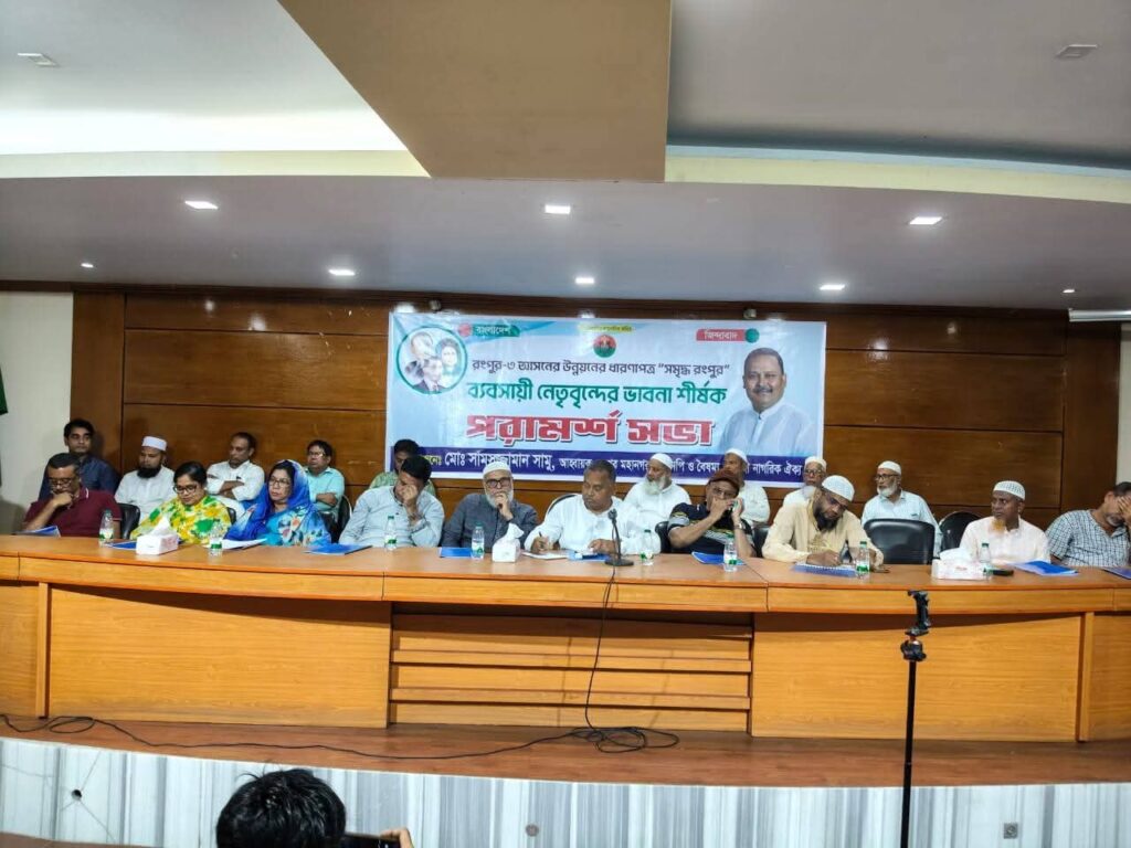 রংপুর সদর-৩ আসনের উন্নয়নের ধারণাপত্র সমৃদ্ধ রংপুর বিনির্মাণে ব্যবসায়ী নেতৃবৃন্দের ভাবনা শীর্ষক পরামর্শ সভা অনুষ্ঠিত হয়েছে।