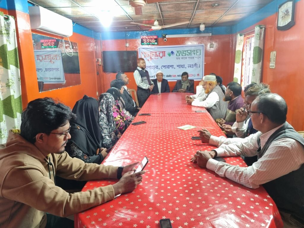 শুভসংঘের সভায় বসুন্ধরা শুভসংঘের উপদেষ্টা ও কালের কণ্ঠের নওগা (সাপাহার-পোরশা) প্রতিনিধি ও প্রেসক্লাব সভাপতি সাংবাদিক তছলিম উদ্দীন, শুভ সংঘের সাধারণ সম্পাদক মতিউর রহমান, সাপাহার উপজেলা বিএনপির সাংগঠনিক সম্পাদক আব্দুল্লাহ আনছারী, প্রেসক্লাব সাধারণ সম্পাদক বাবুল আকতারসহ স্থানীয় সাবেক শিক্ষক এবং অন্যান্য বিশিষ্ট ব্যক্তিবর্গ সেখানে উপস্থিত ছিলেন।