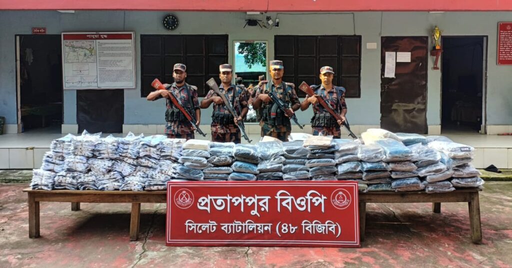 বিজিবির সিলেট ব্যাটালিয়নের (৪৮ বিজিবি) এক সংবাদ বিজ্ঞপ্তিতে জানানো হয়, প্রতাপপুর, বিছনাকান্দি, ডিবিরহাওর, সোনারহাট, কালাসাদেক ও কালাইরাগ বিওপি কর্তৃক পৃথক অভিযান চালিয়ে ভারতীয় গরু, টি-শার্ট, ট্রাউজার, পেঁয়াজ, টমেটো, পান, বিড়ি এবং অবৈধভাবে পাথর উত্তোলনকারী নৌকা জব্দ করা হয়।
