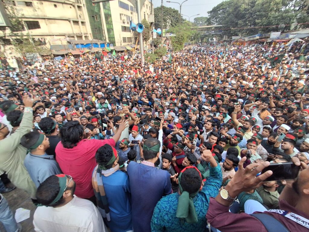 এর আগে জুমার নামাজের পর ঢাকা বিশ্ববিদ্যালয়ের কেন্দ্রীয় মসজিদে শহীদ হাদির রুহের মাগফিরাত কামনায় বিশেষ দোয়া অনুষ্ঠিত হয়। দোয়া শেষে শিক্ষার্থীরা মিছিল নিয়ে শাহবাগে এসে সমাবেশে যোগ দেন।