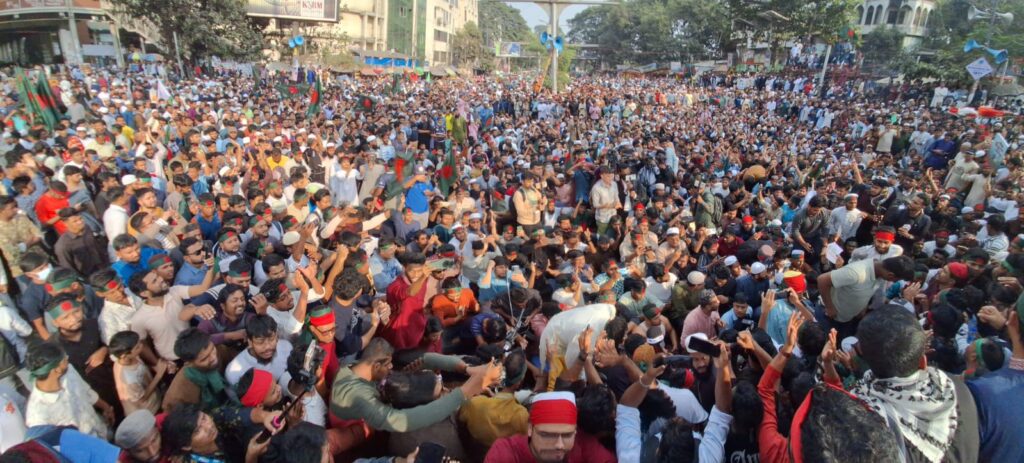 ইনকিলাব মঞ্চের মুখপাত্র শরিফ ওসমান হাদি হত্যার প্রতিবাদ ও দ্রুত বিচার দাবিতে রাজধানীর শাহবাগে শিক্ষার্থী ও সর্বস্তরের মানুষের ঢল নেমেছে। শুক্রবার (১৯ ডিসেম্বর) ভোর থেকেই শাহবাগ এলাকায় জড়ো হতে থাকেন আন্দোলনকারীরা। সময় গড়ানোর সঙ্গে সঙ্গে সেখানে বিভিন্ন শ্রেণি-পেশার মানুষের উপস্থিতি বাড়তে থাকে এবং দুপুরের দিকে বিক্ষোভ সমাবেশ রূপ নেয় গণজমায়েতে।