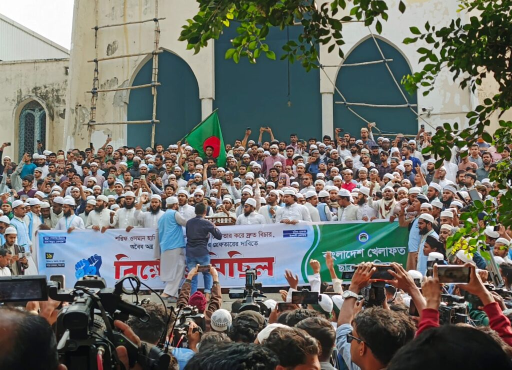 শুক্রবার (আজ) জুমার নামাজ শেষে বায়তুল মোকাররমের উত্তর গেটে এই বিক্ষোভ কর্মসূচি শুরু হয়। ‘শরিফ ওসমান হাদির ওপর হামলাকারীদের গ্রেপ্তার করে দ্রুত বিচার, অবৈধ অস্ত্র উদ্ধার ও লীগ সন্ত্রাসীদের গ্রেপ্তারের দাবি’—শীর্ষক ব্যানারে কর্মসূচিটি আয়োজন করে বাংলাদেশ খেলাফত ছাত্র মজলিস।