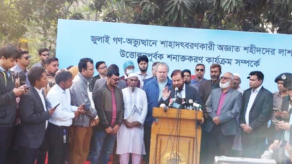মো. ছিবগাত উল্লাহ বলেন, জুলাই গণঅভ্যুত্থানে শহীদদের পরিচয় শনাক্ত হলে, পরিবার চাইলে লাশ তাদের কাছে হস্তান্তর করা হবে।