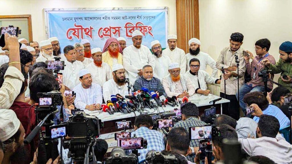 সংবাদ সম্মেলনে উপস্থিত ছিলেন ইসলামী আন্দোলন বাংলাদেশের আমির মুফতি সৈয়দ মুহাম্মদ রেজাউল করিম (চরমোনাই পীর), মাওলানা ইউনুছ আহমাদ, অধ্যাপক আশরাফ আলী আকন, জামায়াতের নায়েবে আমির ডা. সৈয়দ আব্দুল্লাহ মো. তাহের, এএইচএম হামিদুর রহমান আযাদ, নেজামে ইসলাম পার্টির মুফতি হারুন ইজহার, বাংলাদেশ খেলাফত মজলিসের আমির মাওলানা মামুনুল হক ও মহাসচিব মাওলানা জালাল উদ্দিন, খেলাফত মজলিসের মহাসচিব ড. আহমদ আবদুল কাদের এবং জাগপার মুখপাত্র রাশেদ প্রধানসহ সমমনা দলের শীর্ষ নেতারা।