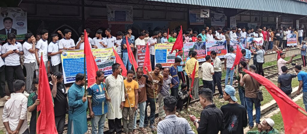 এদিকে শ্রীমঙ্গলে আট দফা দাবিতে পারাবত এক্সপ্রেস ট্রেন আটকে বিক্ষোভ কর্মসূচি পালন করেন স্থানীয় বাসিন্দারা। শনিবার দুপুর ১২টার দিকে ঢাকা থেকে ছেড়ে আসা সিলেটগামী পারাবত এক্সপ্রেস ট্রেনের সামনে অবস্থান নিয়ে অবরোধ শুরু করেন। কর্মসূচিতে বক্তব্য দেন শ্রীমঙ্গল ট্রেন অবরোধ কর্মসূচির সমন্বয়ক কাওসার ইকবাল, সাইফুল ইসলাম প্রমুখ।