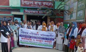 সাপাহারে পরিবার পরিকল্পনা অধিদপ্তরের কর্মীদের ৩য় দিনের কর্মবিরতি ও অবস্থান কর্মসূচি
