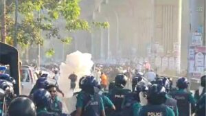 ব্যারিকেড ভাঙার চেষ্টা শিক্ষকদের, জলকামান-সাউন্ড গ্রেনেড নিক্ষেপ