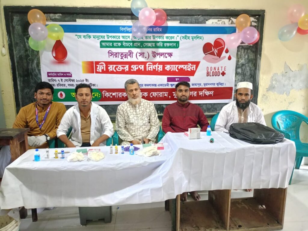 কুমিল্লার মুরাদনগরে মুরাদনগরে ইসলামী ছাত্রশিবিরের সিরাতুন্নবী (সাঃ) উপলক্ষে ফ্রি রক্তের গ্রুপ নির্ণয় ক্যাম্পেইনের আয়োজন করেছে বাংলাদেশ ইসলামী ছাত্রশিবির মুরাদনগর দক্ষিণ কিশোর কন্ঠ পাঠক ফোরাম। গতকাল রবিবার(৭ সেপ্টেম্বর) সকালে মুরাদনগর উপজেলা জাহাপুর কে কে একাডেমি এন্ড কলেজ এক্যাম্পেইন অনুষ্ঠিত হয়।