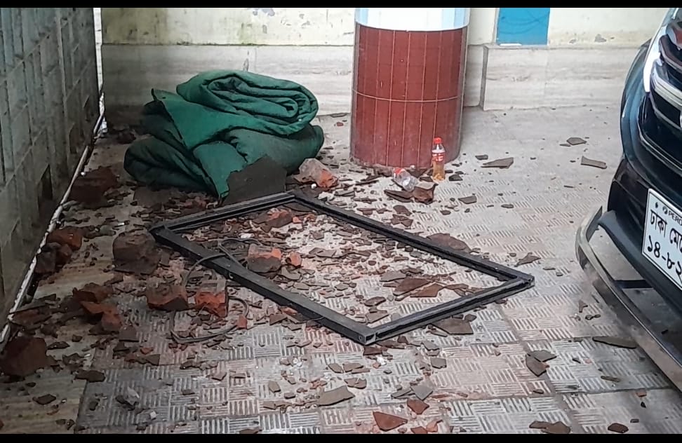 মুখ বাধা অবস্থায় দুষ্কৃতীকারীরা এ সময় বাসার জানালায় পাটকেল নিক্ষেপ করে। এতে জানালার গ্লাস ভেঙে যায়। নিচে গ্যারেজে দুটি গাড়ি ক্ষতিগ্রস্ত হয়।