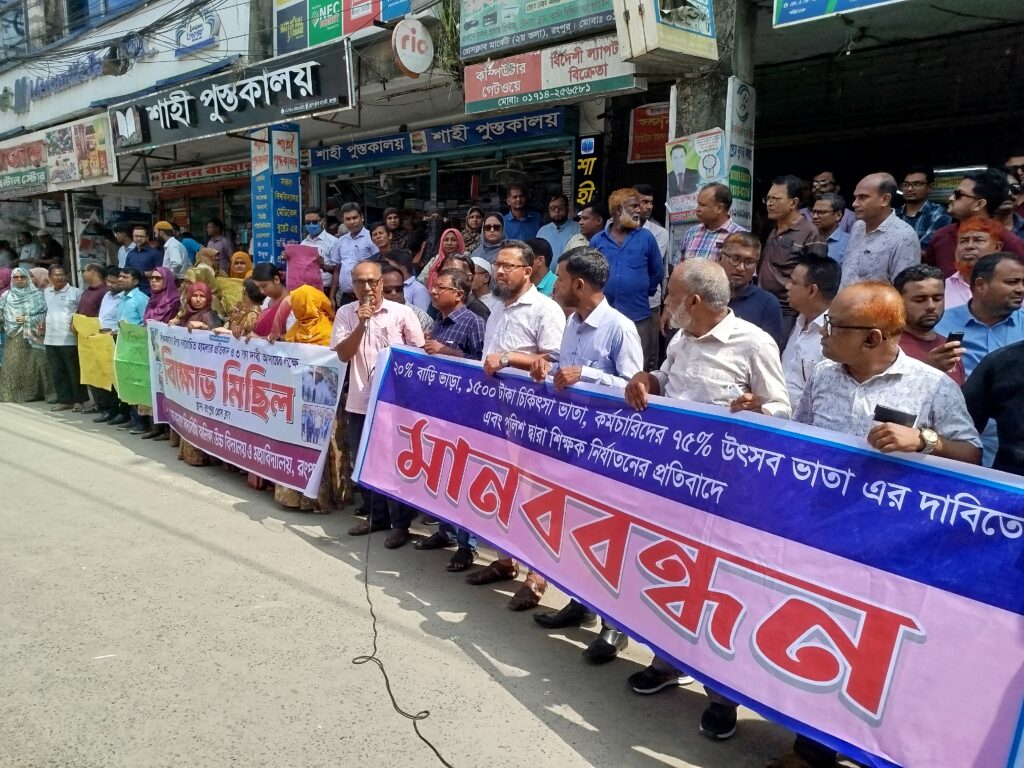 রংপুরে শিক্ষক-কর্মচারীদের মানববন্ধন বিক্ষোভ মিছিল