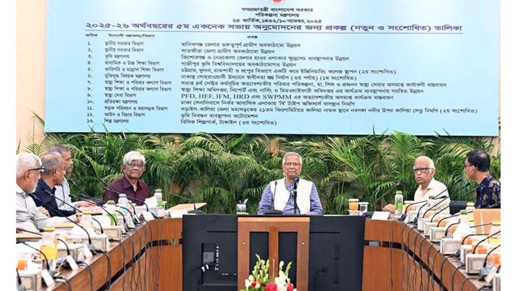 চলতি অর্থবছর (২০২৫-২৬)-এর পঞ্চম একনেক সভায় এই অনুমোদন দেওয়া হয়। আজ পরিকল্পনা কমিশন প্রাঙ্গণে এনইসি সম্মেলনকক্ষে অনুষ্ঠিত এ বৈঠকে সভাপতিত্ব করেন প্রধান উপদেষ্টা ও একনেক -এর চেয়ারপার্সন অধ্যাপক ড. মুহাম্মদ ইউনূস।