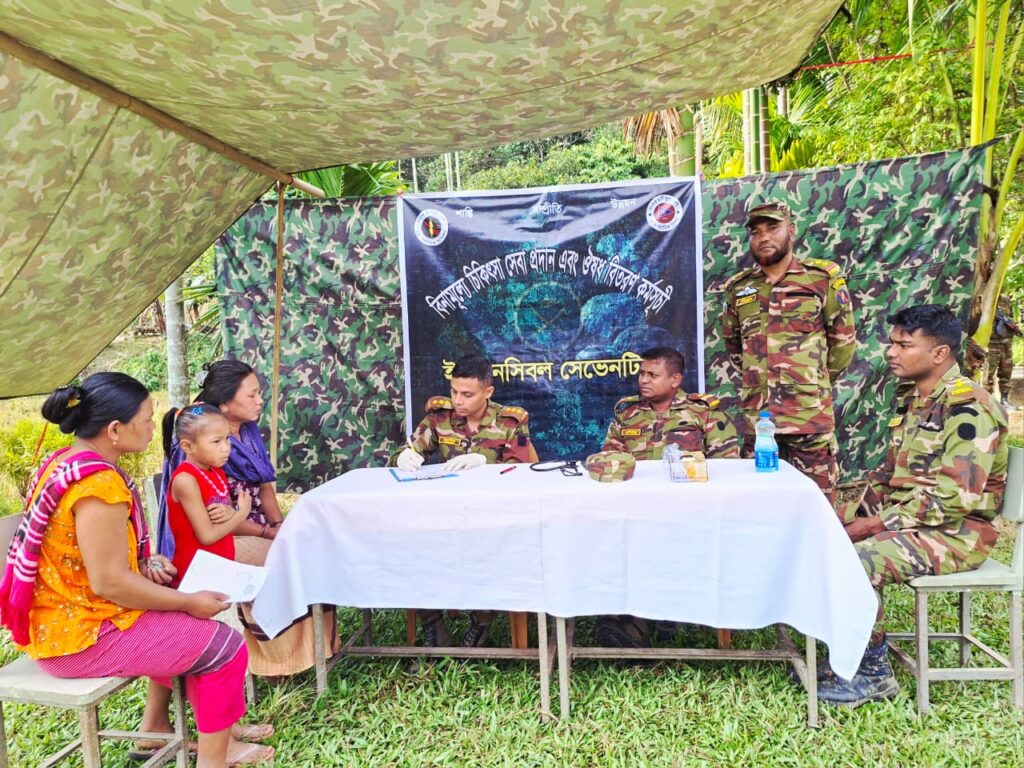 ০২ ডিসেম্বর ২০২৫, সোমবার নানিয়ারচর সেনা জোন (১৭ ই বেংগল) এর উদ্যোগে চট্টগ্রামের দুর্গম পাহাড়ী অঞ্চলে বসবাসরত জনগণের স্বাস্থ্যসেবা নিশ্চিত করতে কুড়ামারা সরকারি প্রাথমিক বিদ্যালয় মাঠে বিনামূল্যে চিকিৎসা সেবা ও ঔষধ বিতরণ কর্মসূচির আয়োজন করা হয়। গত ২৫ নভেম্বর ২০২৫ তারিখ হতে কুড়ামারা এলাকায় বিশেষ অপারেশন চলাকালীন সময় দেখা যায় যে, অত্র এলাকাটি দুর্গম পাহাড়ী অঞ্চল হওয়ায় এই এলাকার জনসাধারণ সুচিকিৎসা হতে বঞ্চিত।