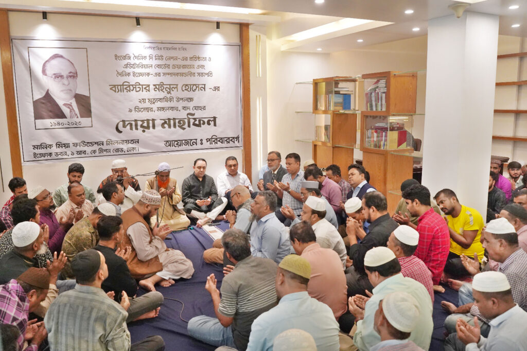 এর পর বাদ জোহর আর কে মিশন রোডস্থ ইত্তেফাক ভবনে মানিক মিয়া ফাউন্ডেশন মিলনায়তনে পরিবার বর্গের উদ্যোগে দোয়া মাহফিলের আয়োজন করা হয়। মরহুমরে রুহের মাগফিরাত কামানা করে এই দোয়ায় উপস্থিত ছিলেন তাঁর বড় ছেলে জাবেদ হোসেন, ছোট ছেলে ও দ্য নিউ নিশন-এর ব্যবস্থাপনা সম্পাদক আরশাদ হোসেন, দৈনিক নয়া দিগন্তের সম্পাদক সালাউদ্দিন মোঃ বাবর, বিভিন্ন পত্রিকার সাংবাদিক, আইনজীবী এবং নিউ নেশনের সাংবাদিক-কর্মকর্তা-কর্মচারীবৃন্দ।