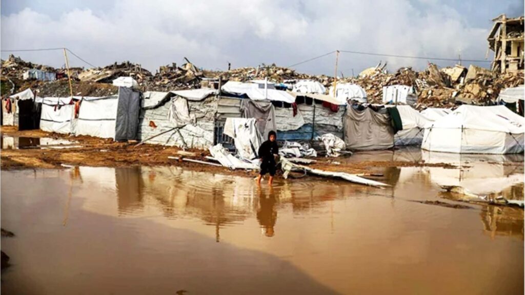 আনাদোলু এজেন্সির প্রতিবেদন অনুযায়ী, গতকাল ভোর থেকে রাত পর্যন্ত চলা একটানা বৃষ্টিপাতের কারণে তাঁবুগুলো পানিতে ডুবে গেছে। এর ফলে ইতিমধ্যেই ইসরায়েলের দুই বছরের আগ্রাসনের কারণে বাস্তুচ্যুত পরিবারগুলোর অবস্থা আরও সংকটজনক হয়ে উঠেছে।