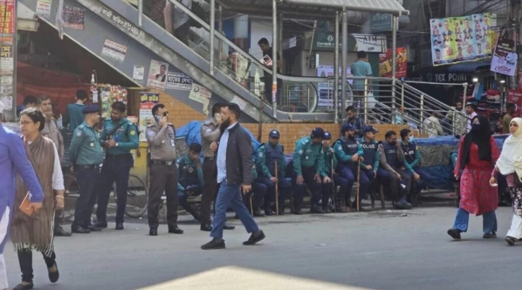 ফার্মগেট এলাকায় এই পরিস্থিতি নিয়ন্ত্রণে রাখতে পুলিশের বিপুল সংখ্যক সদস্য মোতায়েন করা হয়েছে।
